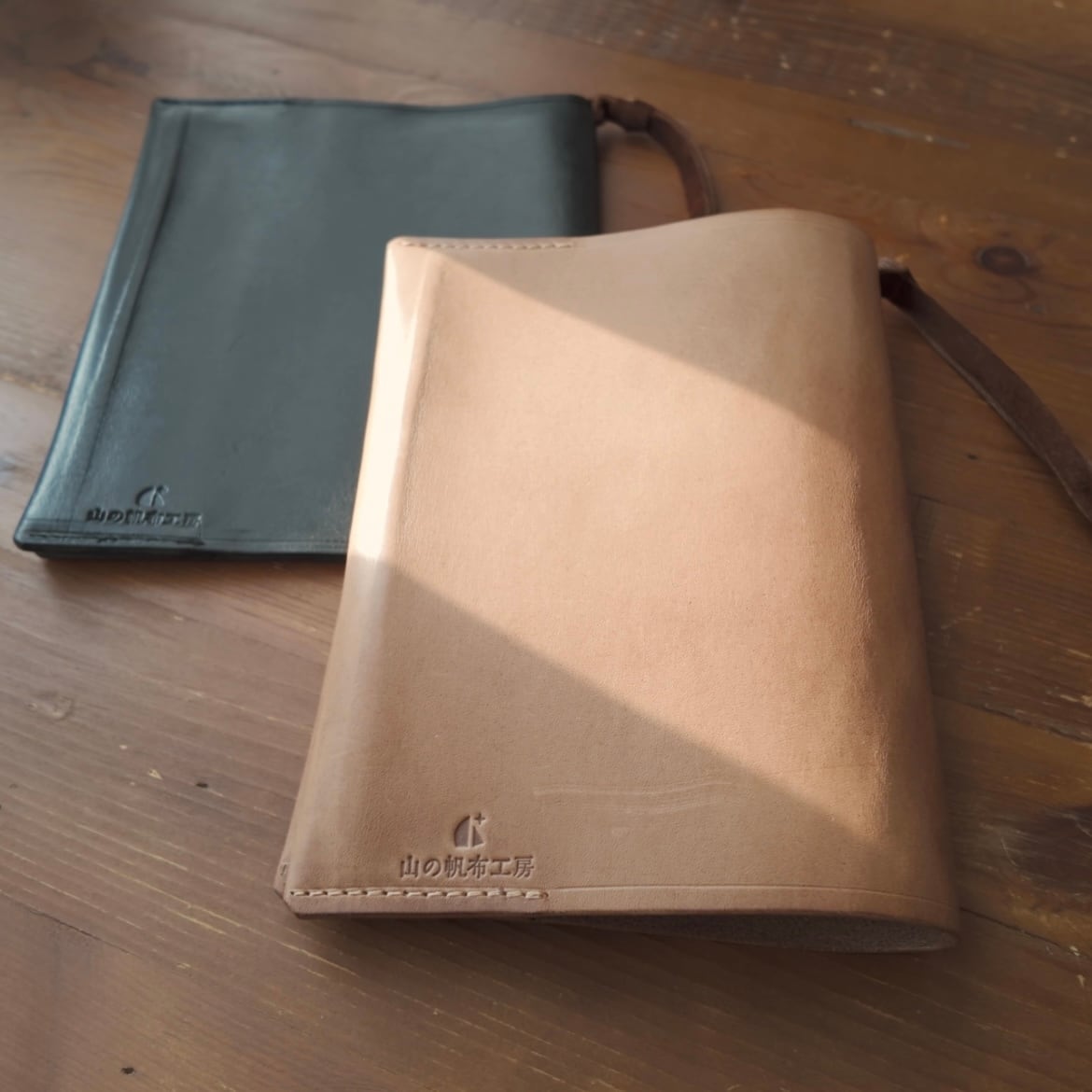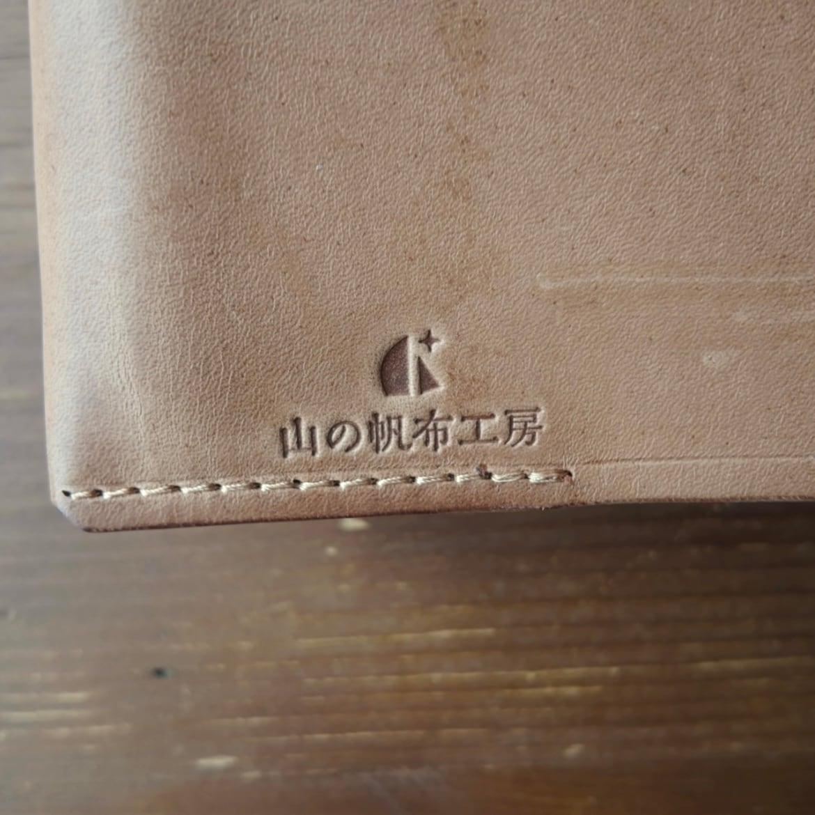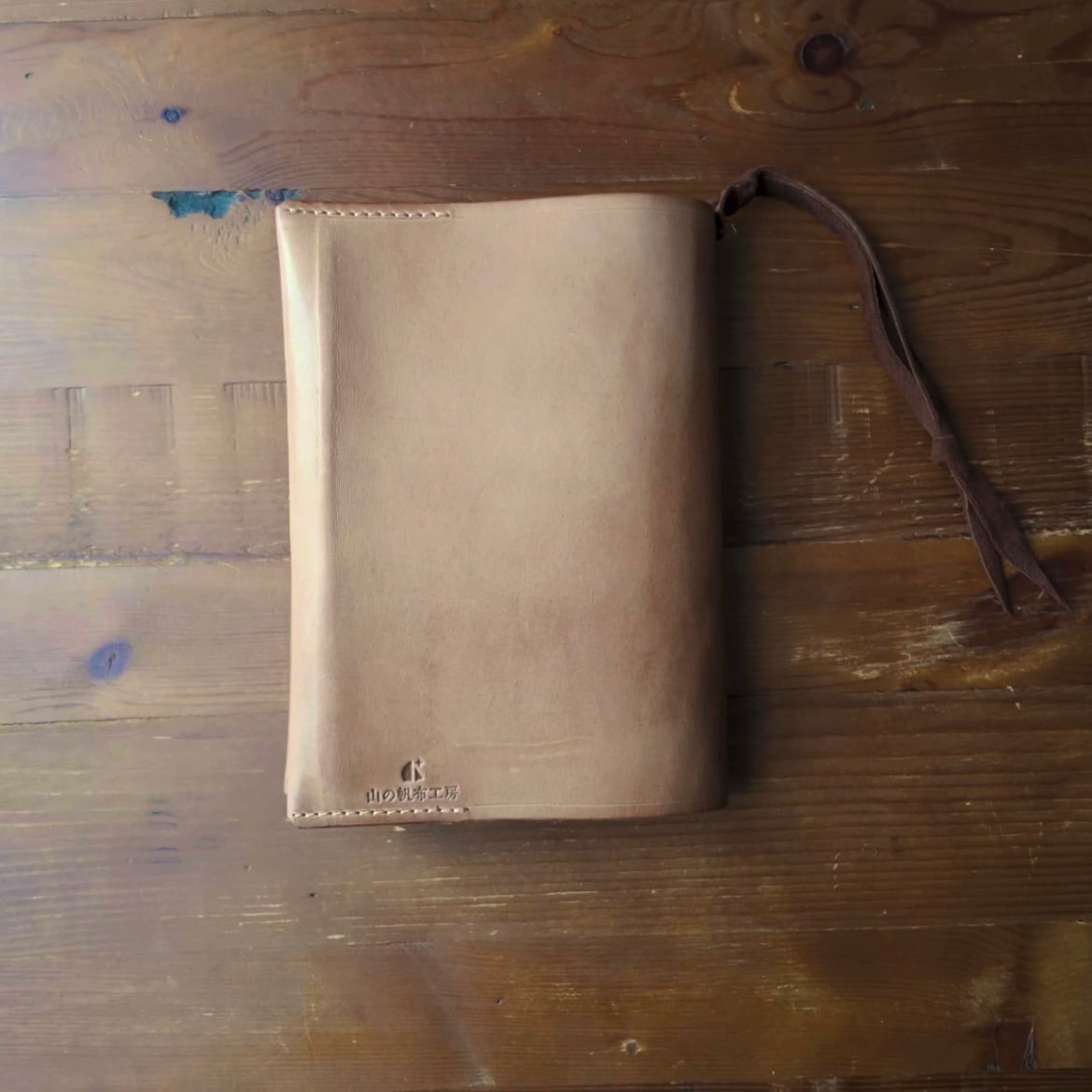 山の帆布工房の刻印入りで、栞紐には鹿革を使用したシンプルでありながら存在感があり、使うほどに飴色に変化し愛着が湧くアイテムです。