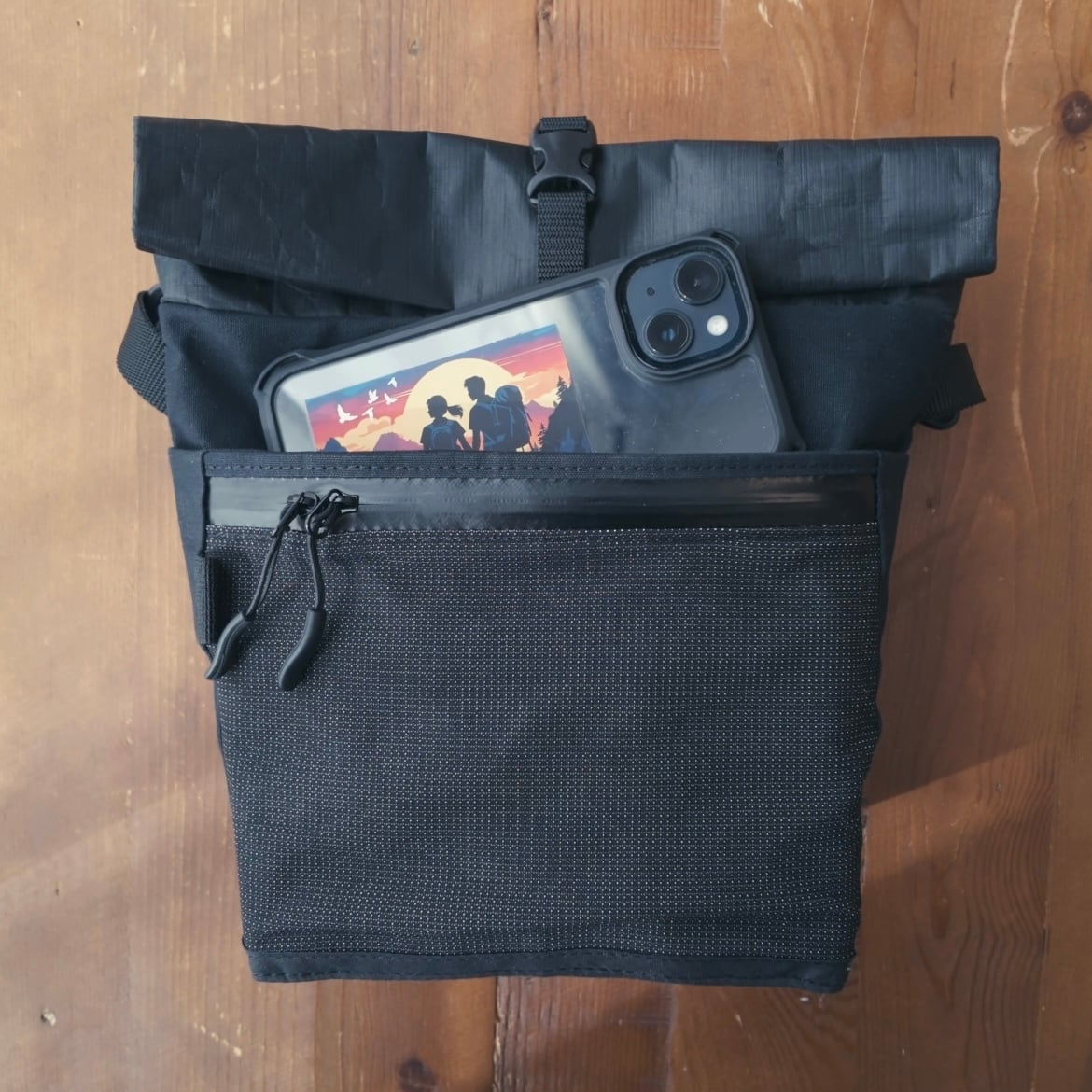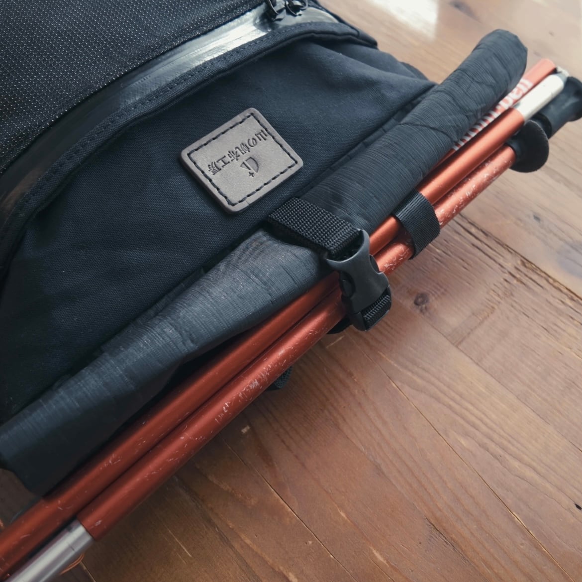 ロールトップ部分には、世界の冒険家が信頼するDyneema® Composite Fabric 2.92を採用。紙のように軽いのに、鋼鉄よりも強靭。だからこそ、街から山へ、軽快に持ち運べます。