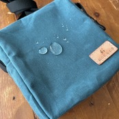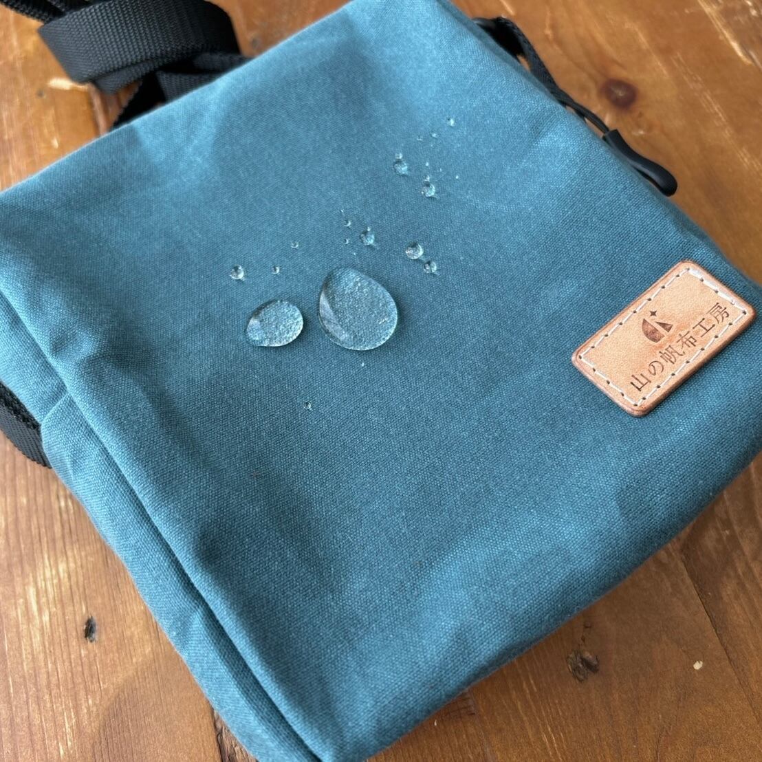 パラフィン加工(蝋の中に生地を漬け込む防水加工)が施されているため、小雨程度であればはじきますが、徐々に防水性能が弱くなります。
