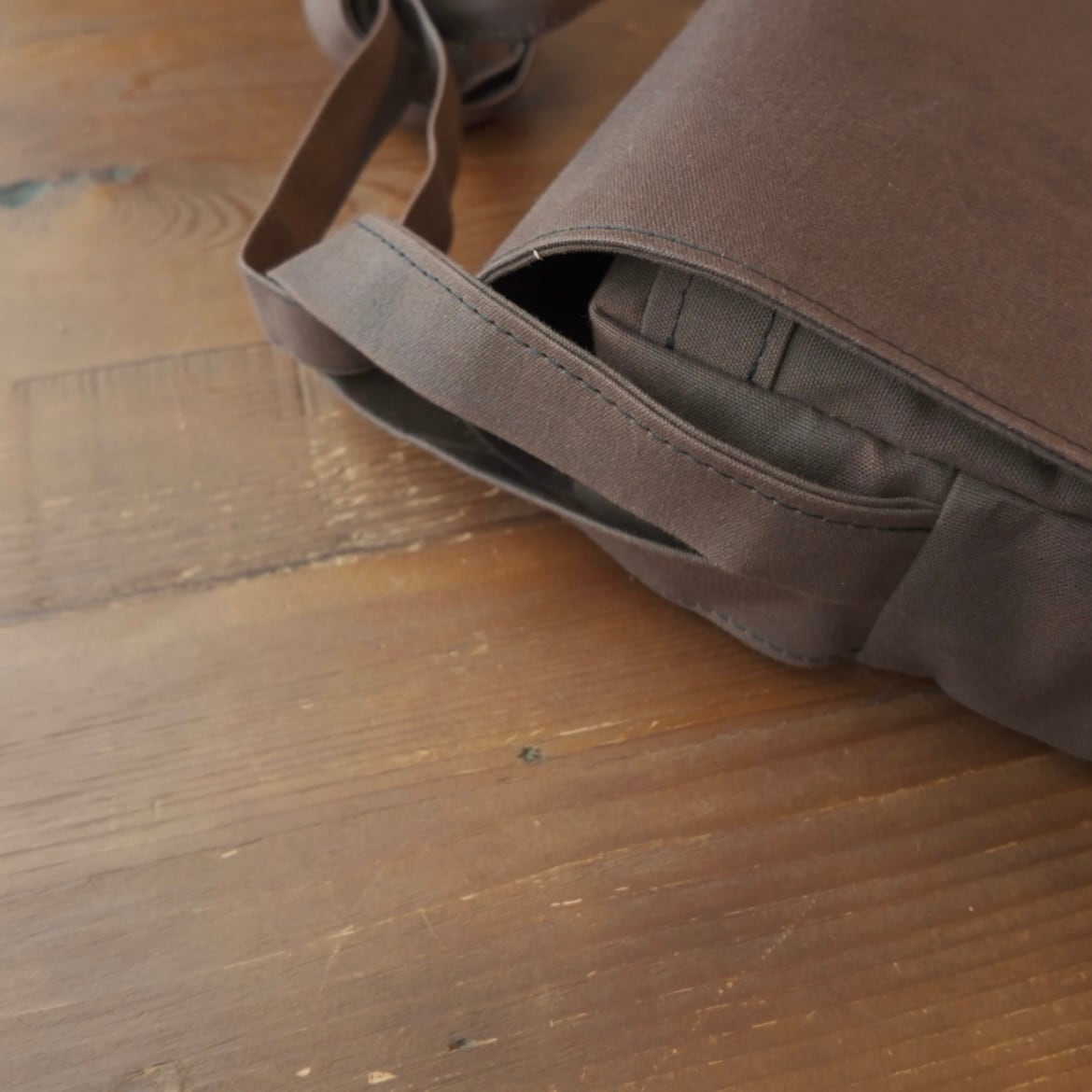 バッグの底面は帆布を二重にし、ダブルステッチで縫い上げ強度を高めています。