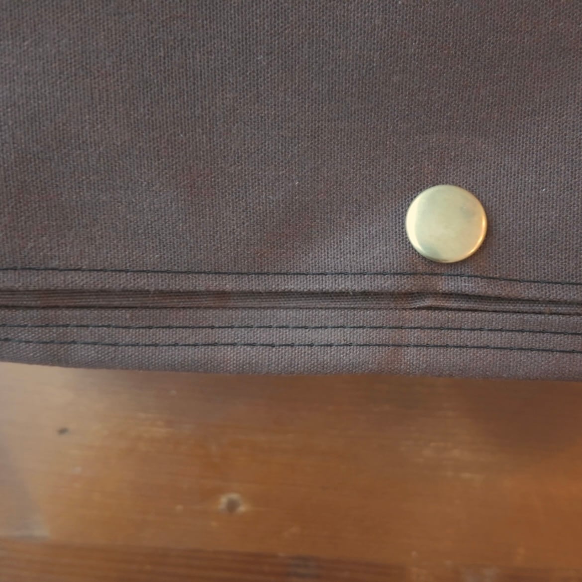 帆布の蝋加工、ステッチの縫い直し、革タグのオイル入れ、ボタンの締め直し等。