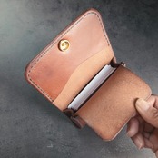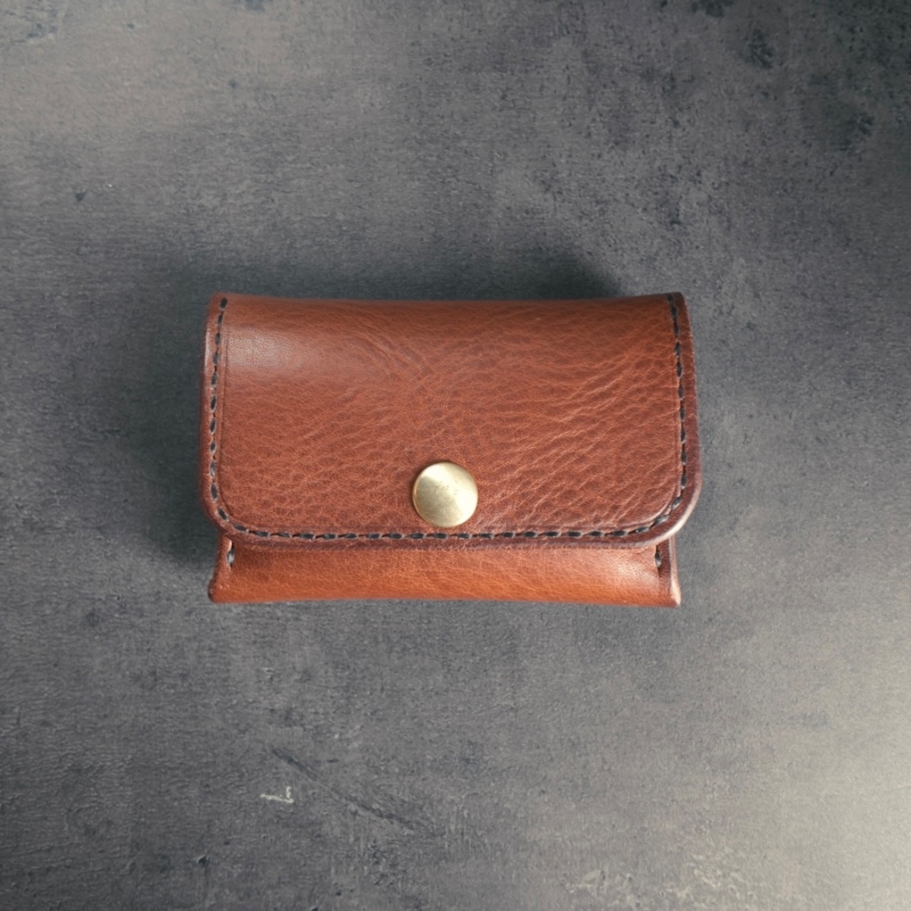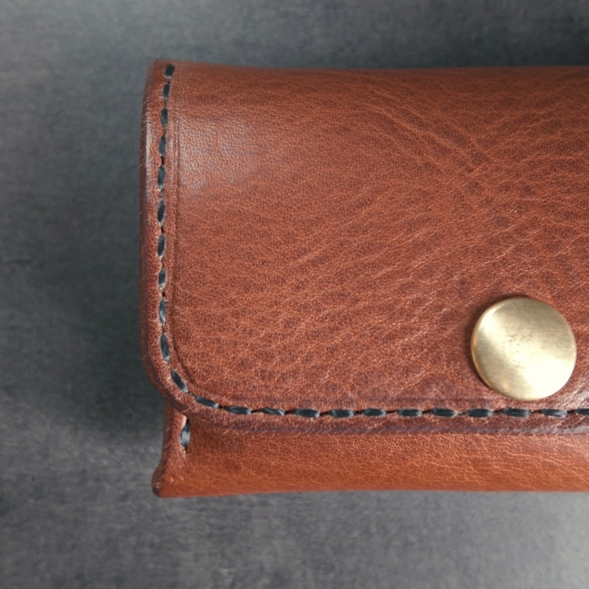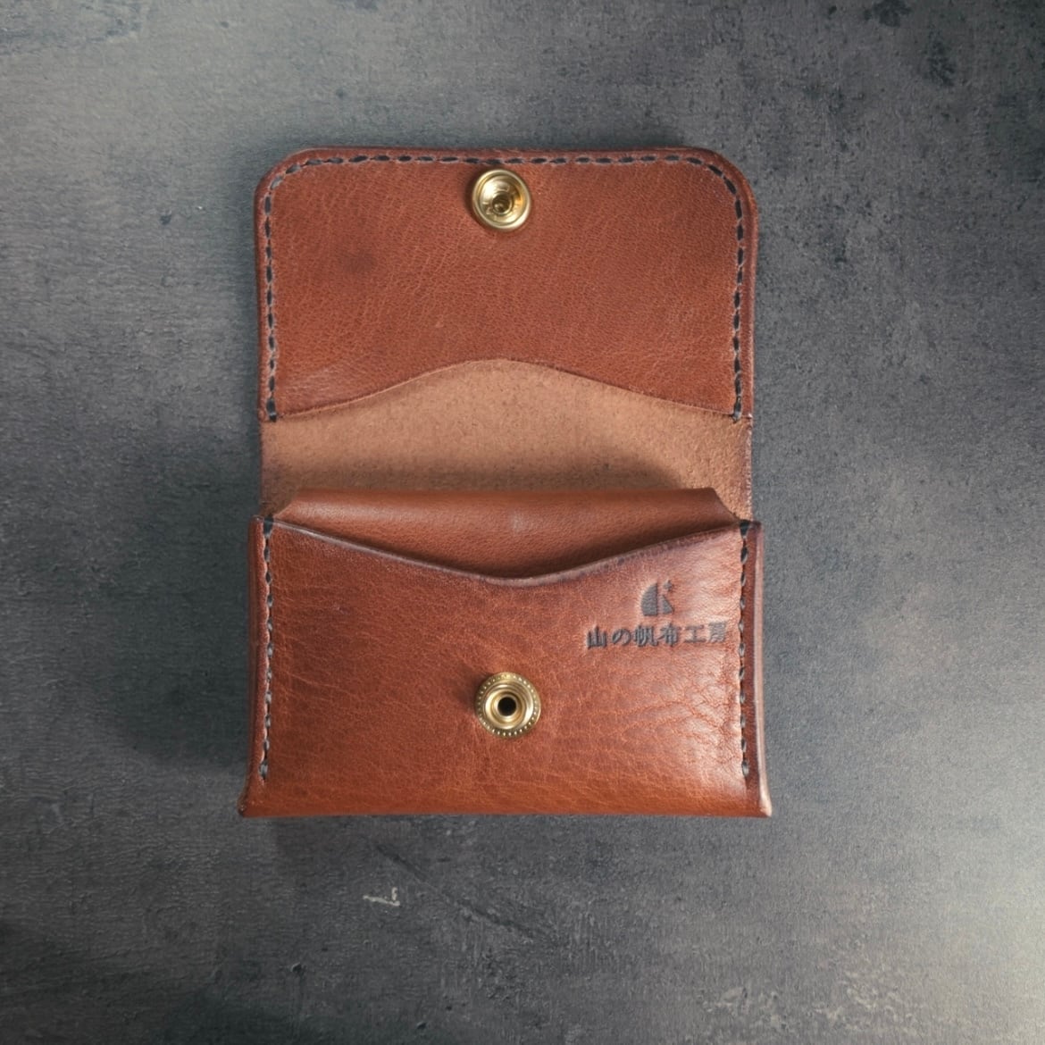 しっとりした質感でありながら肉厚なワイルドオイルレザーを太めのシニュー糸&広めの縫いピッチにて総手縫いで仕立てたCLASSIC カードケース。