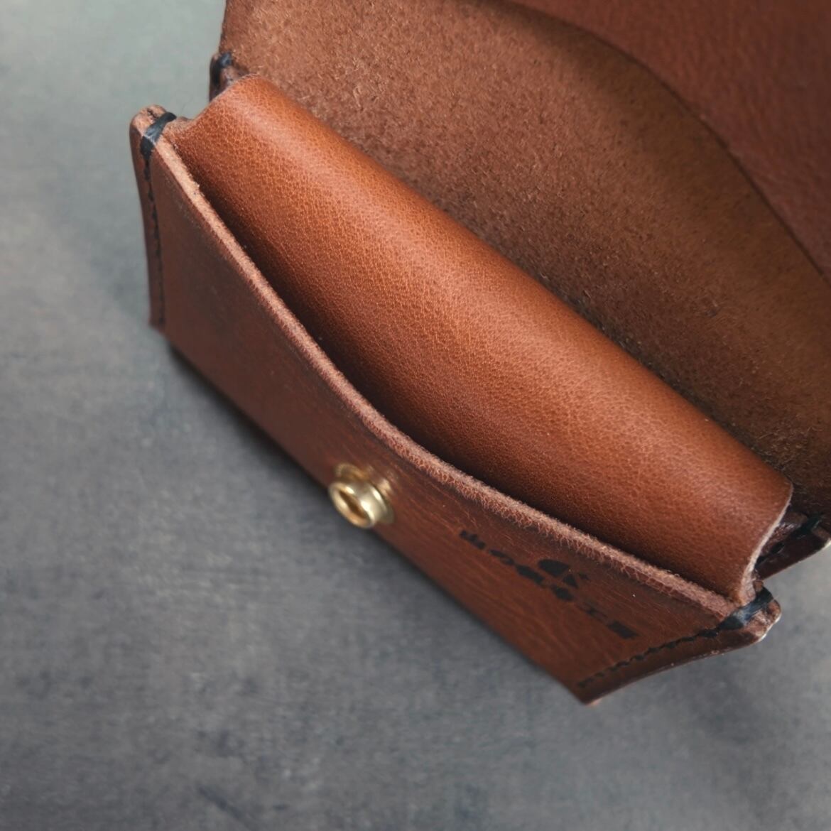 メインのマチつきカードポケットには、ケースを開いた時に不意にカードが出てこない様に小さめのフラップが備えられています。