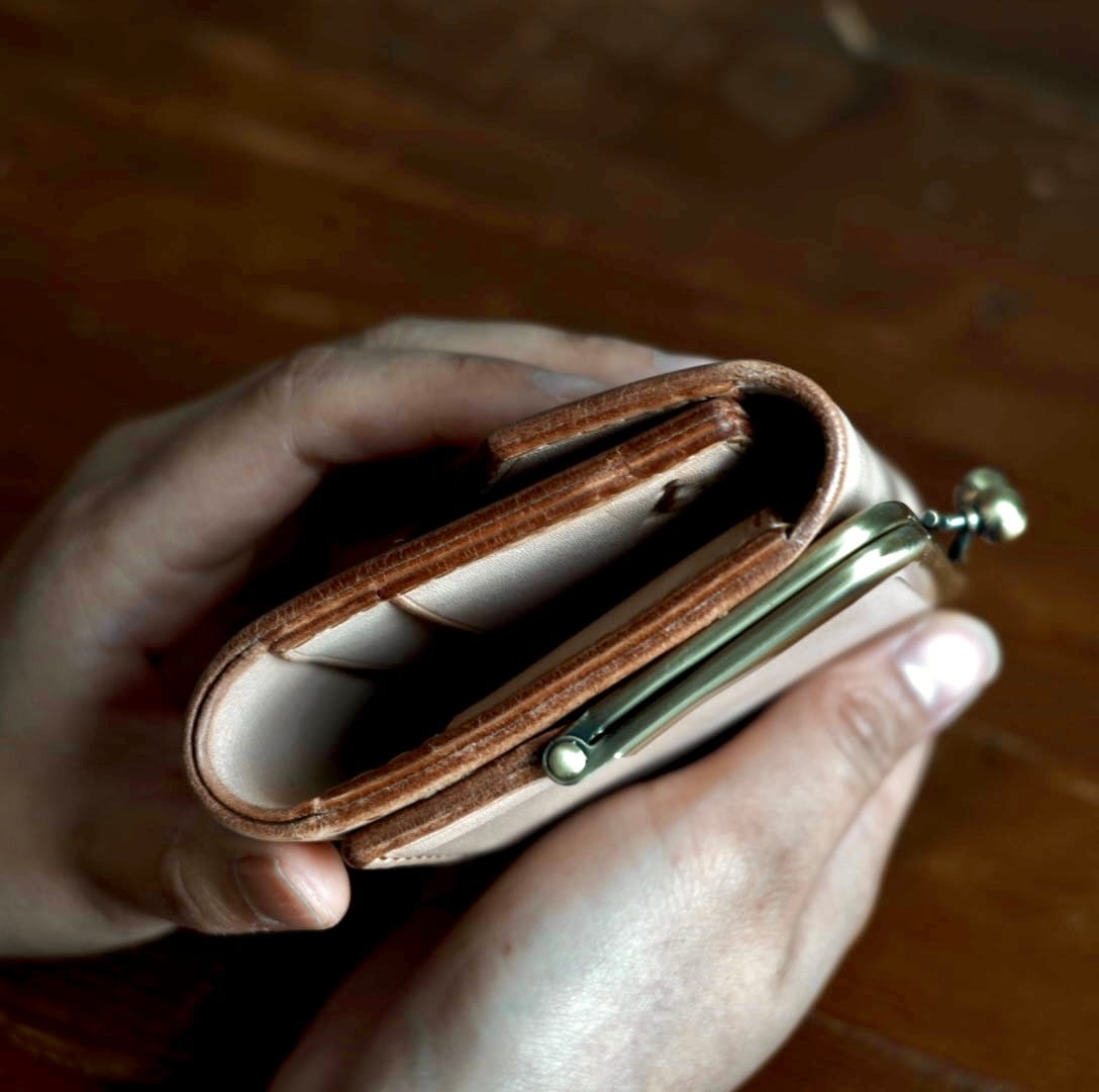 可愛らしさと品の良さをそっと纏った、“あなたと一緒に成長する”革のがまぐちウォレット。
