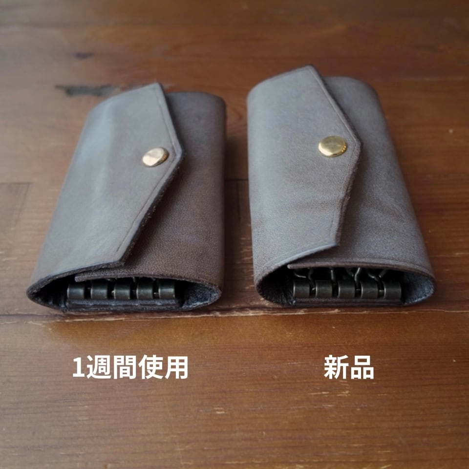 毎日使うキーケースは手のひらでそっと撫でられ、光を浴びたり、こすれたりしながら、少しずつ深い艶色に育っていきます。