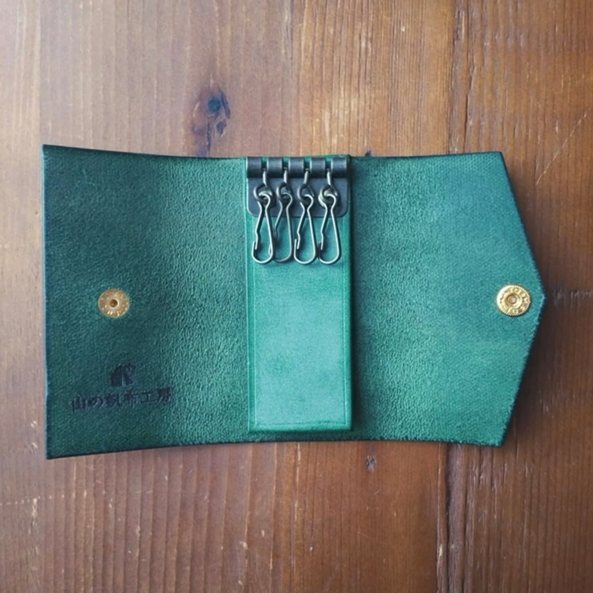 毎日使うキーケースは手のひらでそっと撫でられ、光を浴びたり、こすれたりしながら、少しずつ深い艶色に育っていきます。