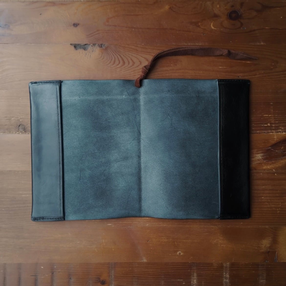 山の帆布工房の刻印入りで、栞紐には鹿革を使用したシンプルでありながら高級感がある一品です。